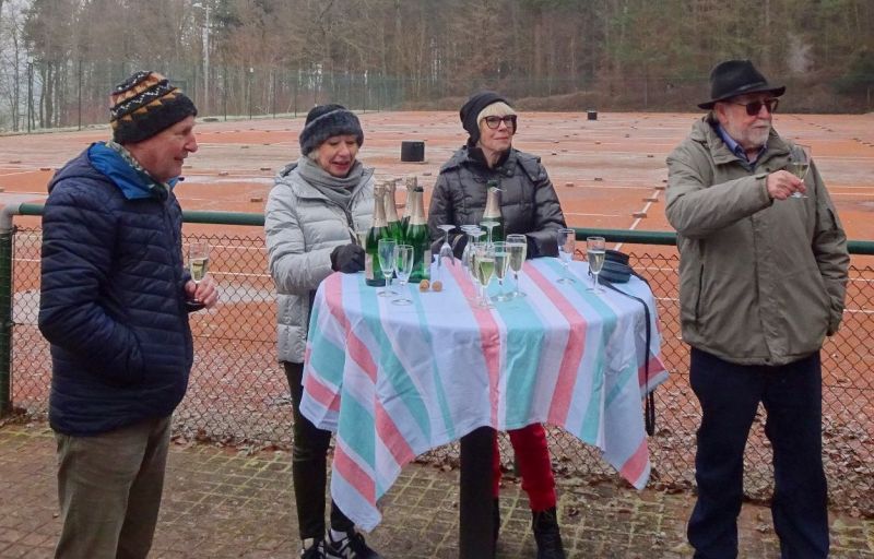 Das Turnier ging in geselliger Runde im Tennispavillon zu Ende bei diversen kalten Getränken, von Iris vorbereitetem leckeren Essen sowie heiterer Unterhaltung.