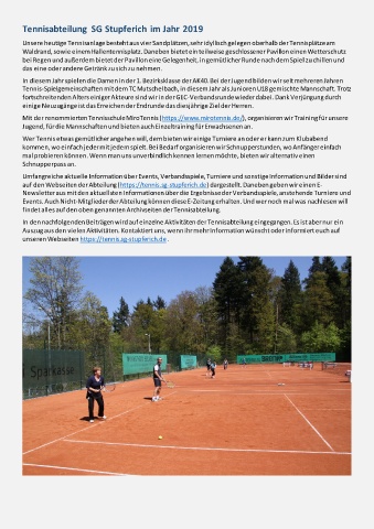 auf den Webseiten der Abteilung (https://tennis.sg-stupferich.de) dargestellt. Daneben geben wir einen E-